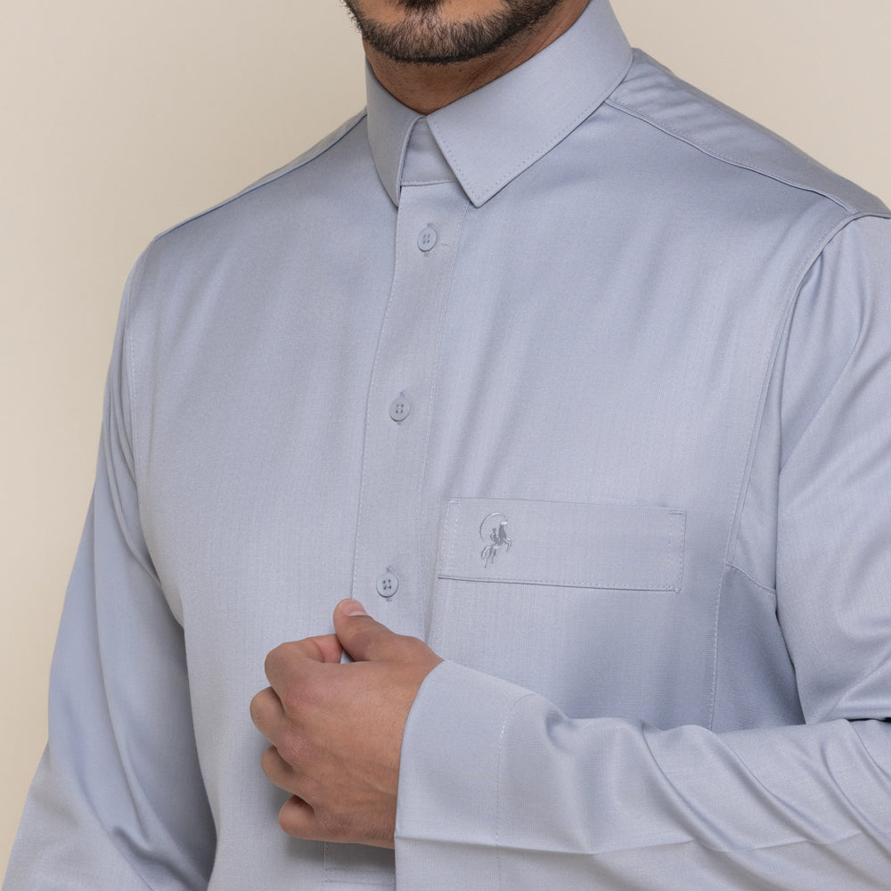 صُنع هذا الثوب الجاهز للارتداء من مزيج بوليستر فاخر، ويتميز بملمس ناعم، وانسيابية ممتازة، مع تجعيد أقل. كما انه يتميز بياقة مميزة لإضفاء لمسة عصرية على التصميم الكلاسيكي. يُضفي السحاب المخفي على الزرزور والأكمام العادية لمسة نهائية أنيقة وراقية.