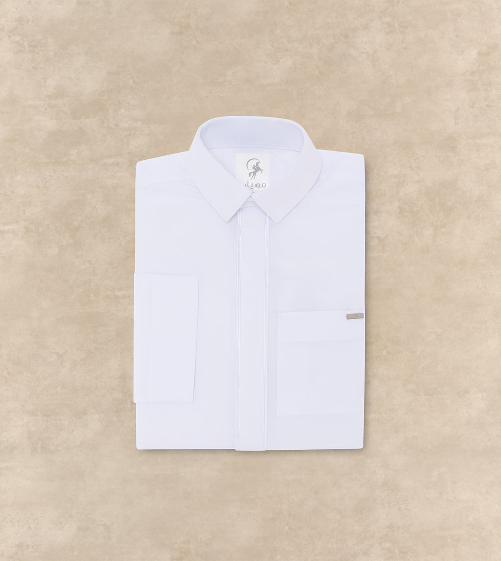 دع صغيرك ينطلق بأناقة وثقة مع هذا الثوب الكلاسيكي. قطعة أساسية أنيقة مصممة للراحة والحركة والفخر. كما انه مصمم خصيصاً للأولاد من سن 7 سنوات فما فوق، يتميز بياقة قلاب أنيقة، وسحاب أمامي مخفي على الزرزور، وأكمام عادية. لمظهر أنيق وراقي.