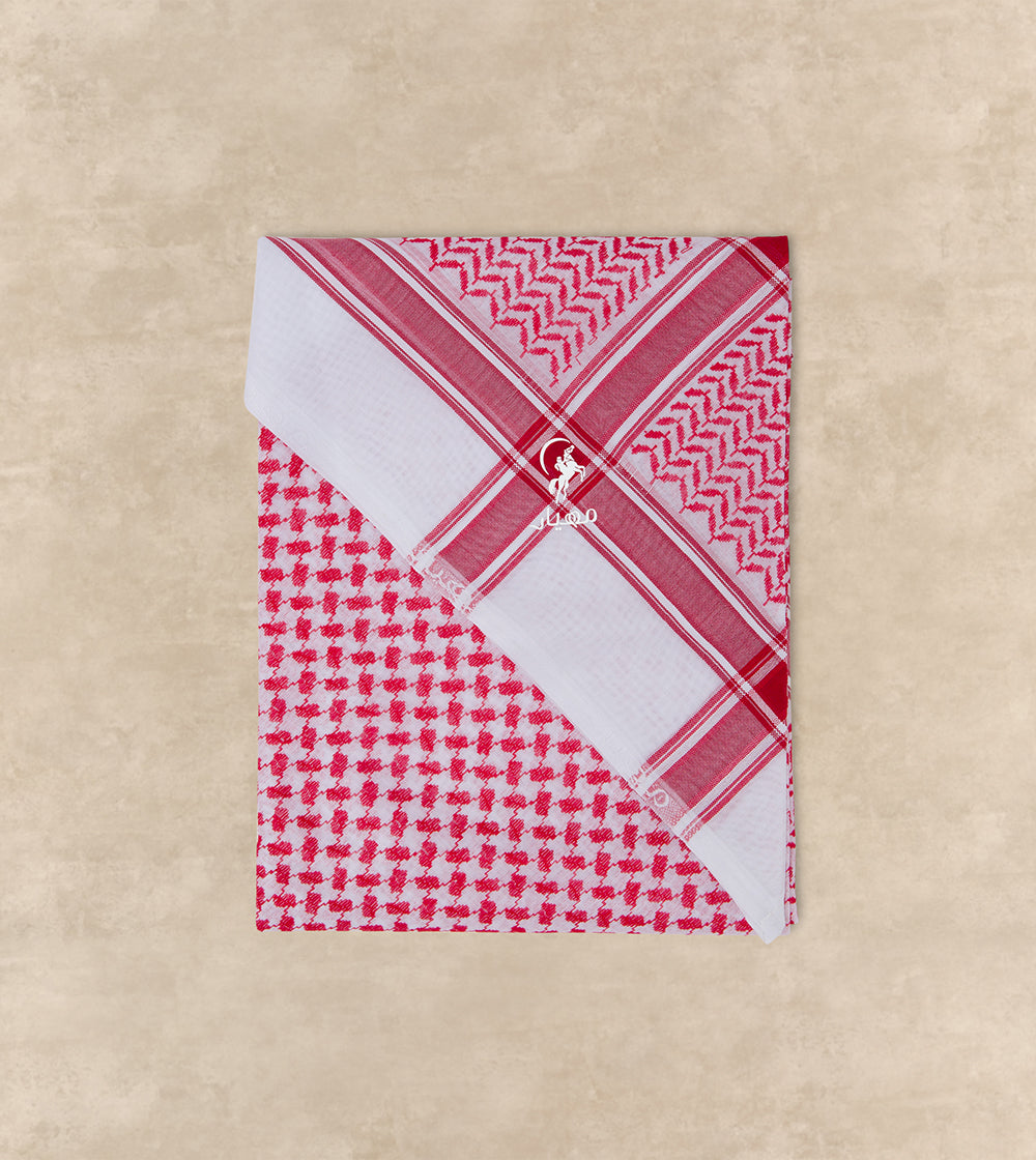 شماغ قطني بنقشة كلاسيكية باللونين الأحمر والأبيض، لإطلالة كلاسيكية أنيقة.