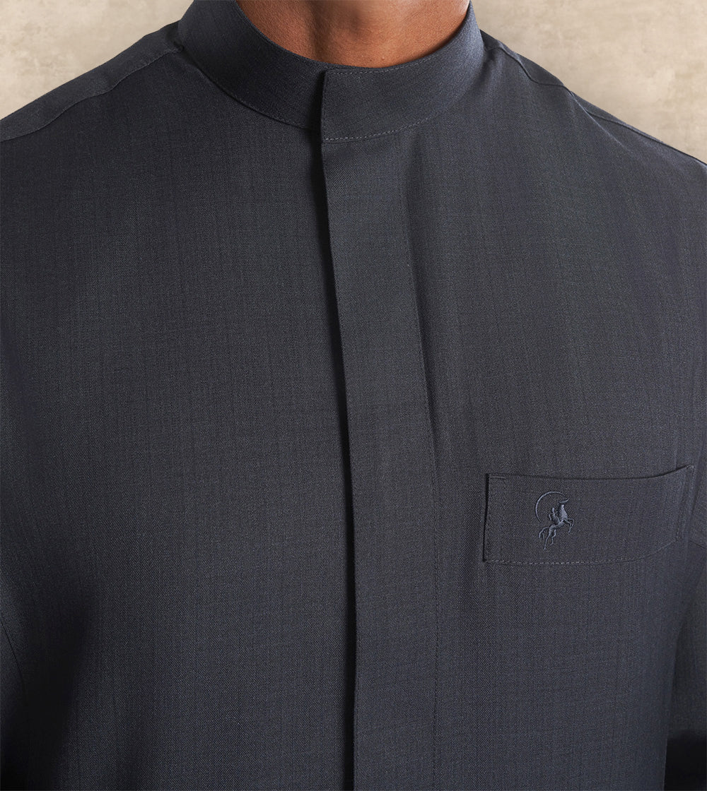 Casual colored winter thobe for daily use, with mandarin collar, concealed zipper at placket with regular sleeve. Made with high quality 88% polyester 12% viscose fabric with no crease property.