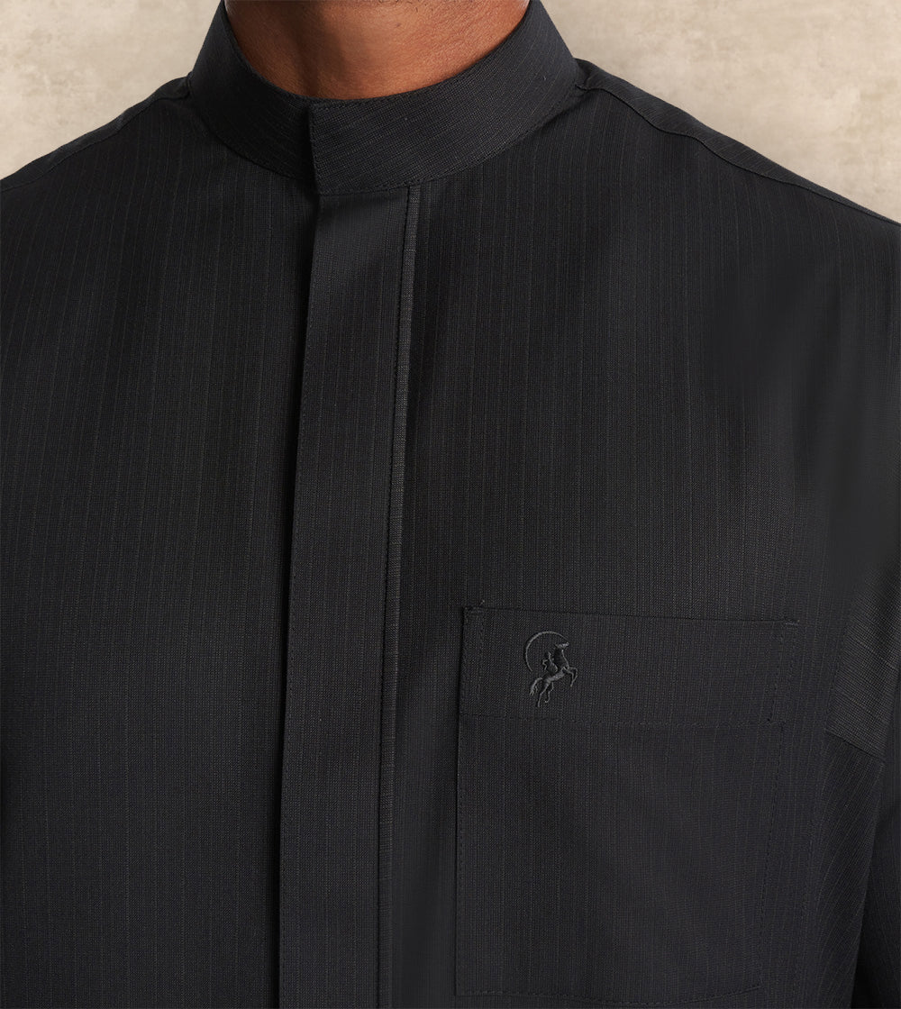 Casual colored winter thobe for daily use, with mandarin collar with concealed zipper at placket,regular sleeve and piping details at placket. Made with high quality 72% polyester 28% viscose fabric with no crease property.