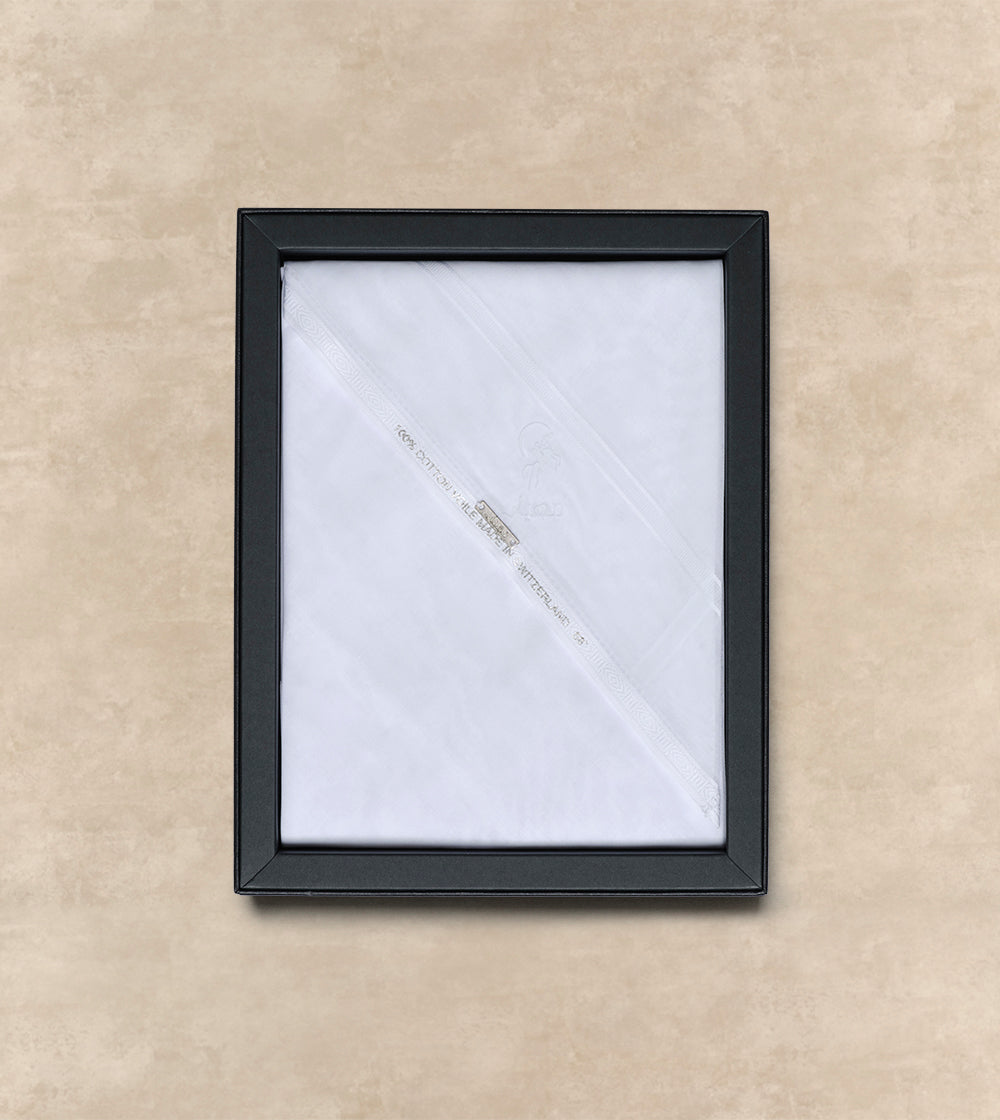 Luxurious white ghutra crafted from superfine Swiss cotton. More Details
