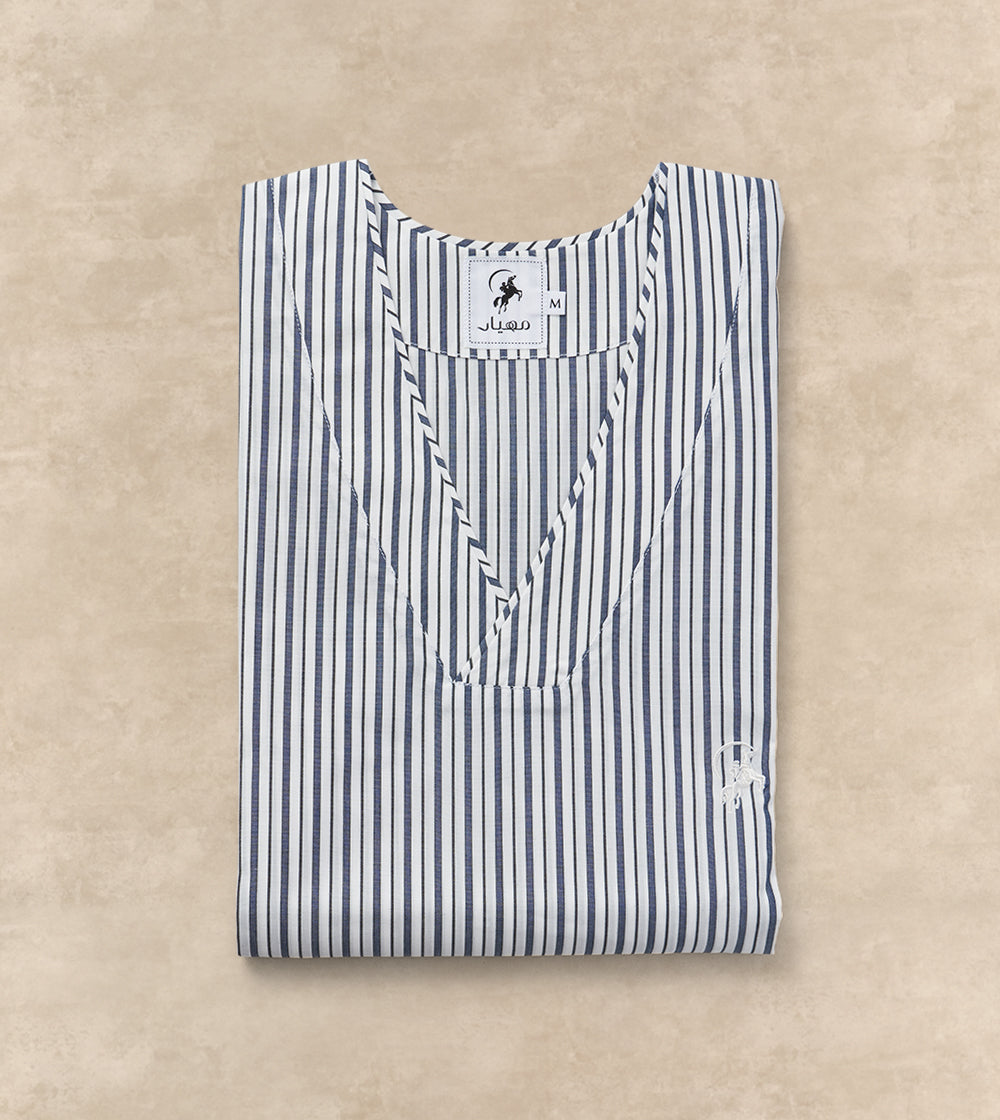 Stay cool and composed in this lightweight cream jalabia, perfect for warm days and relaxed moments. Its soft poly-cotton blend ensures breathability and ease. Perfect for lounging at home or relaxing throughout the day.