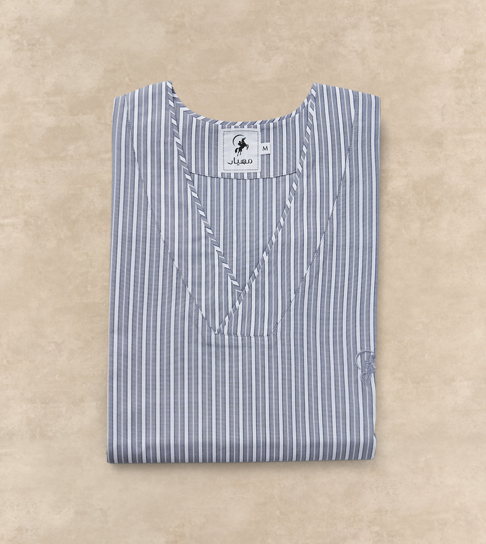 Soft grey jalabia designed to beat the heat with style.