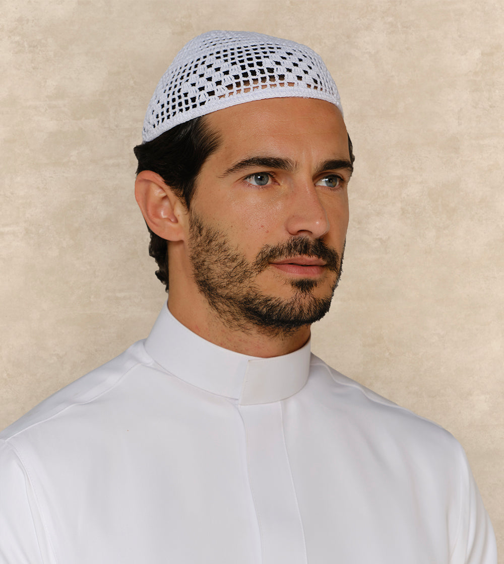 This knitted Khufia is made of 100% cotton, for all day comfort.