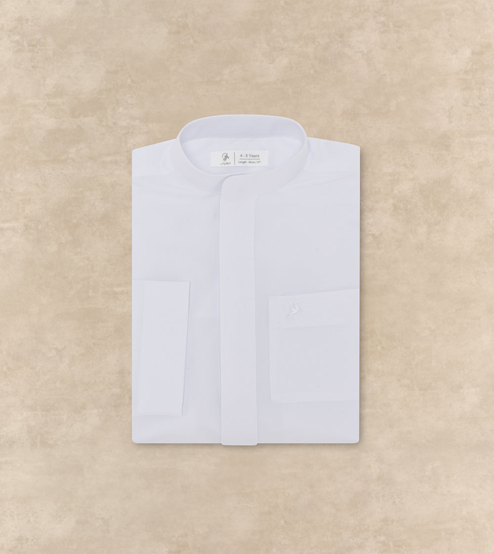 Let your young one step out in confidence and style with this classic thobe—timeless in design and crafted for ease, movement, and everyday pride. Tailored for boys aged 2-6 years, it features a mandarin collar, a concealed zipper at the placket, and regular sleeves for a clean, polished look.