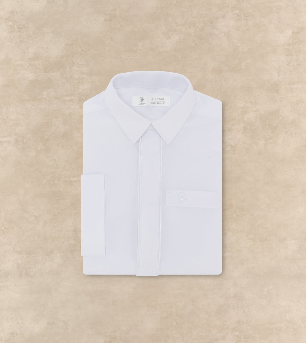 Let your young one step out in confidence and style with this classic thobe—timeless in design and crafted for ease, movement, and everyday pride. Tailored for boys aged 7 and above, it features a smart shirt collar, a concealed zipper at the placket, and regular sleeves for a clean, polished look.