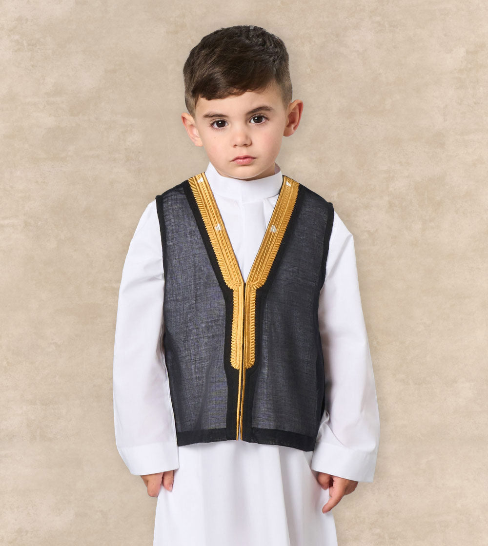 Elegant traditional Sidairi crafted Gold Metallic Embroidery at front. Made with high quality 70% wool 30% Polyester fabric.