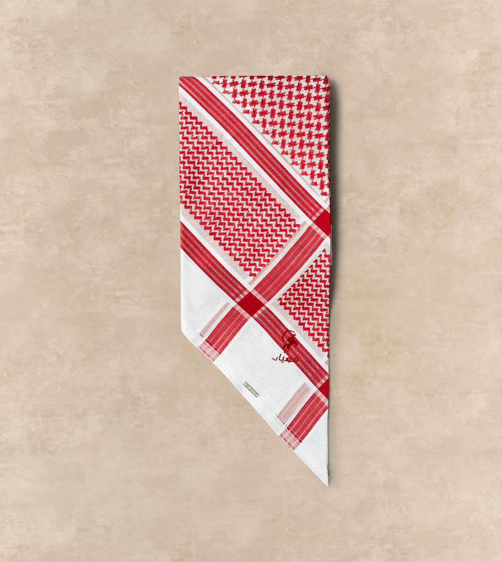 Elevate your wardrobe with Mihyar’s Premium English Shemagh—crafted from superfine 100% cotton woven in England. This high-end piece features a distinguished jacquard design and the signature Mihyar metal logo, blending luxury with cultural pride. Lightweight, breathable, and styled for those who appreciate refined craftsmanship, it’s the perfect choice for weddings, official events, or sophisticated everyday wear.