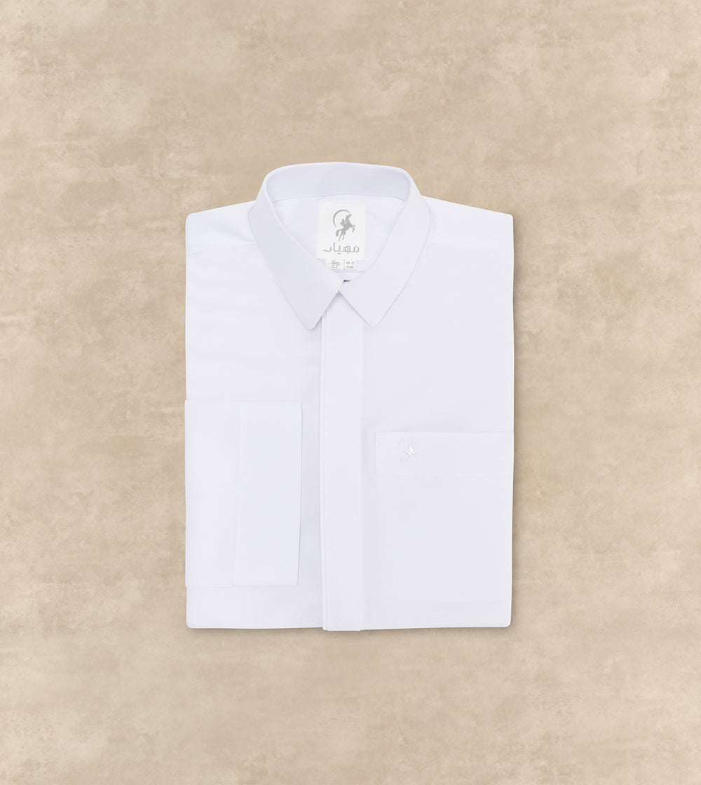 Let your young one step out in confidence and style with this classic thobe—timeless in design and crafted for ease, movement, and everyday pride. Tailored for boys aged 7 and above, it features a smart shirt collar, a concealed zipper at the placket, and regular sleeves for a clean, polished look.